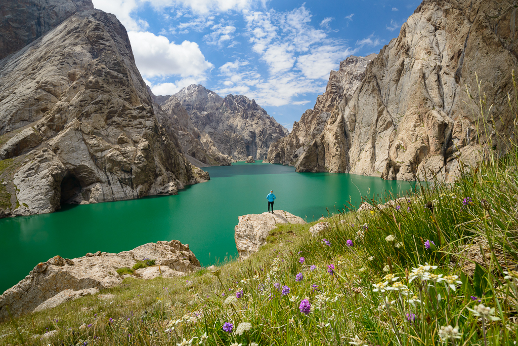 For lovers of wild mountain landscapes, few destinations on Earth are more spectacular than the Kyrgyz Republic (also known as Kyrgyzstan) with its soaring peaks ranging from Alpine to Himalayan in beauty and scale, glaciers, pristine lakes, wild rivers, spruce and fir forests, alpine wildflowers, and expansive high pastures. The Tien Shan mountains rise higher and wilder than the Rockies, Sierra Nevada, Alps, or Andes – peaks below 16,000-feet in elevation are barely considered worthy of a name. Along the Chinese border, the Kokshaal-Too range soars to truly Himalayan heights, including the world’s most northern summits over 7,000 meters (22,965 feet): Khan Tengri (translation: Lord of the Skies) and Jengish Chokusu (also known in Russian as Pik Pobeda, or Victory Peak). The landscape beneath the peaks is sublime: glacier-carved gorges, slopes covered in alpine wildflowers (there is more edelweiss here than in the Alps), raging rivers, spruce and fir forests, and high pastures (“jai-loh”) where semi-nomadic Kyrgyz graze small herds of horses, yaks, sheep, and cattle during the short summer.