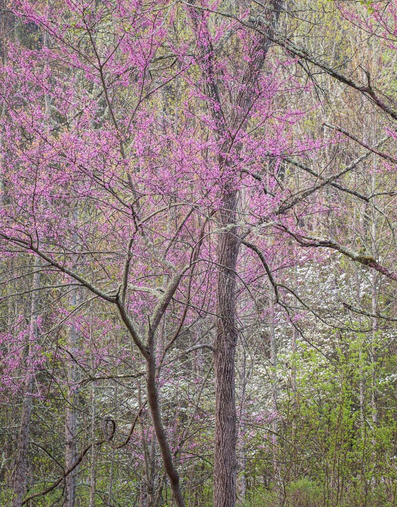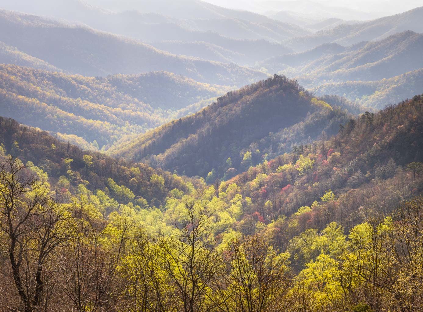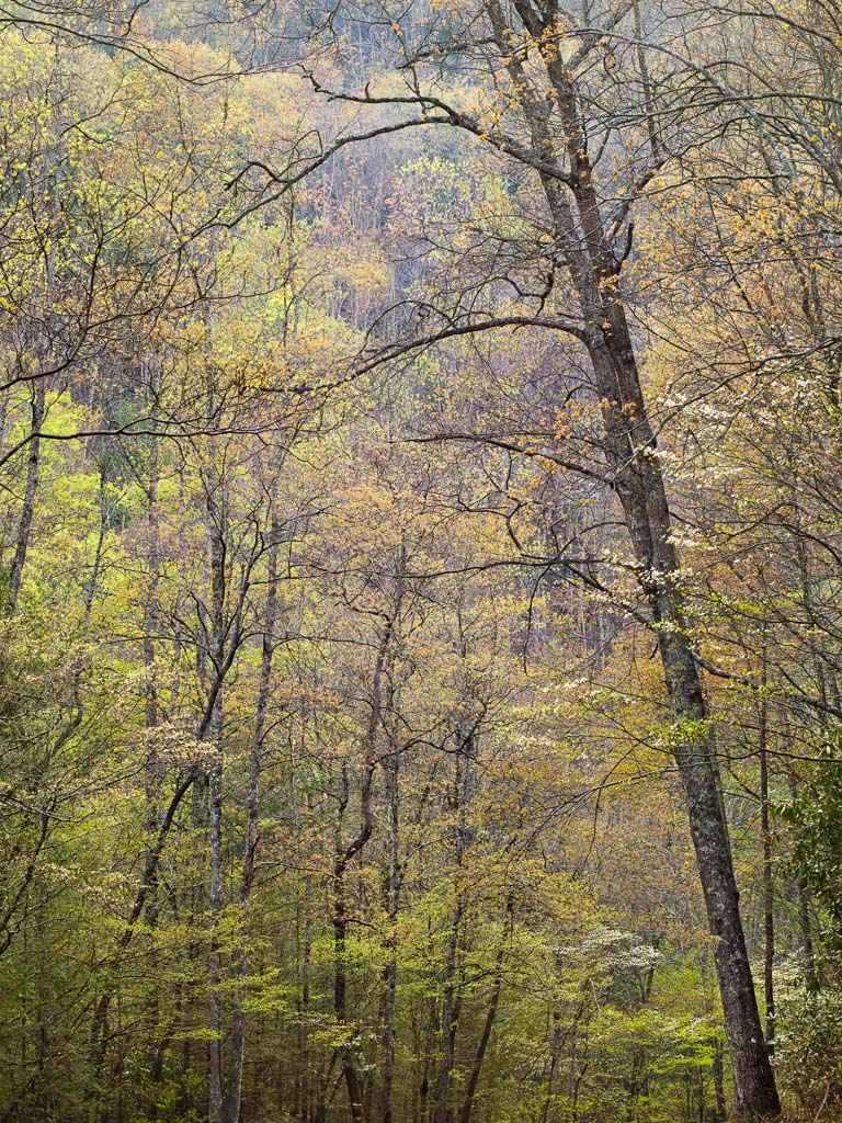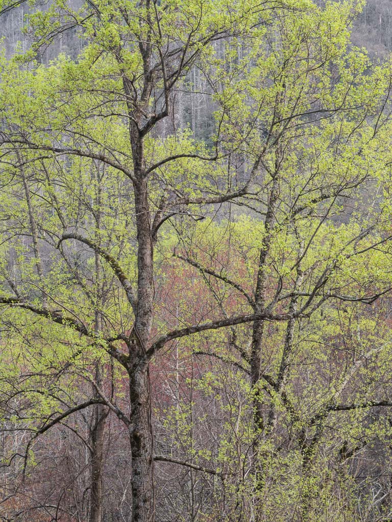 In April, Great Smoky Mountains National Park comes alive with the elegant rebirth of spring in the Appalachian mountains on the border between Tennessee and North Carolina. Redbud and dogwood trees bloom, fragile new pale-green leaves emerge, and fog brings simplicity to the chaotic the forest backdrop. This is without question one of the gems of the National Park system, and along with neighboring Blue Ridge Parkway it represents the highlight of Appalachia. Offering easy to a wide range of opportunities from expansive landscapes to intimate designs, it’s one of our favorite outdoor photographic “classrooms,” visiting midweek in spring means no crowds in this, the most visited park in the entire National Park System.