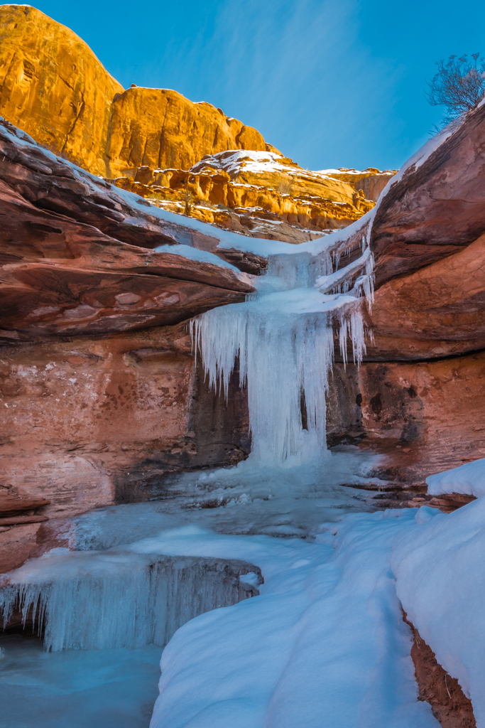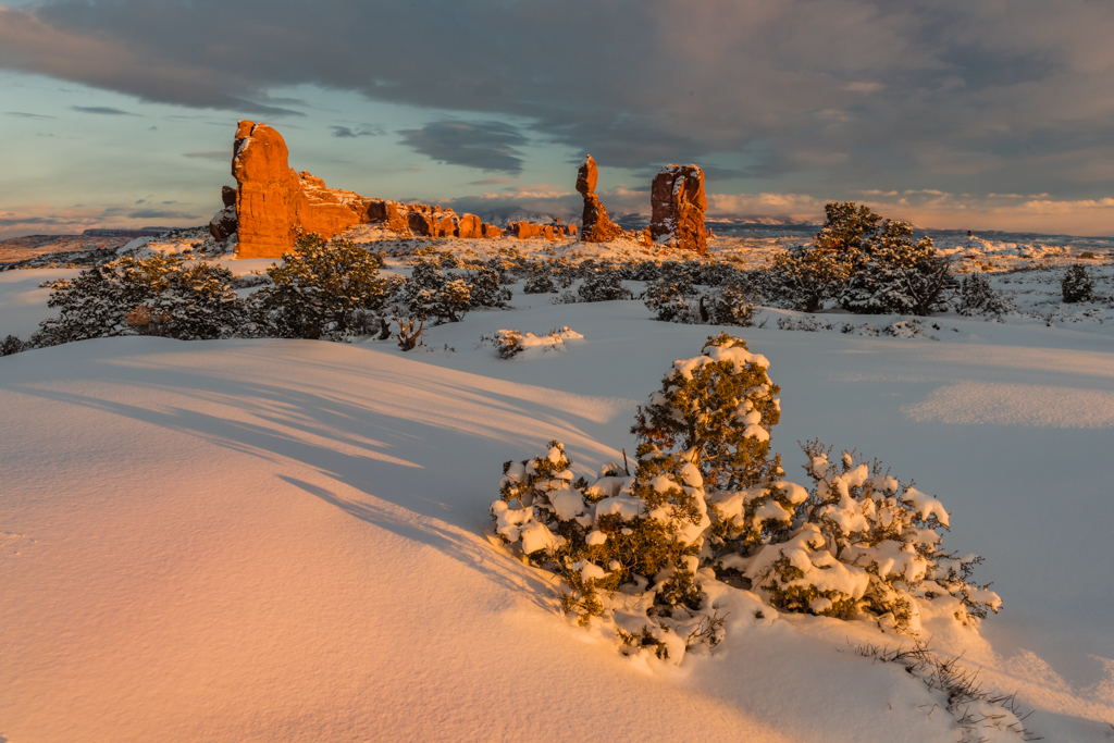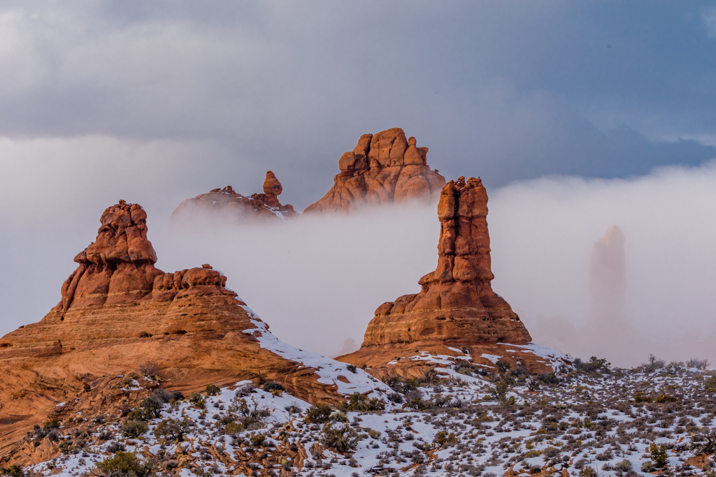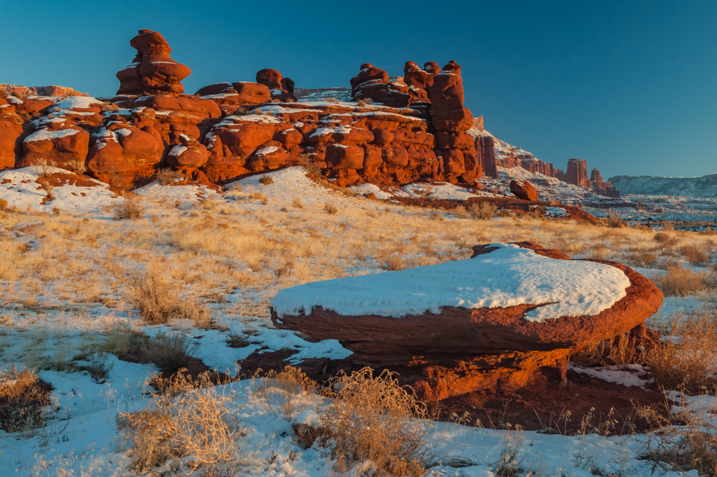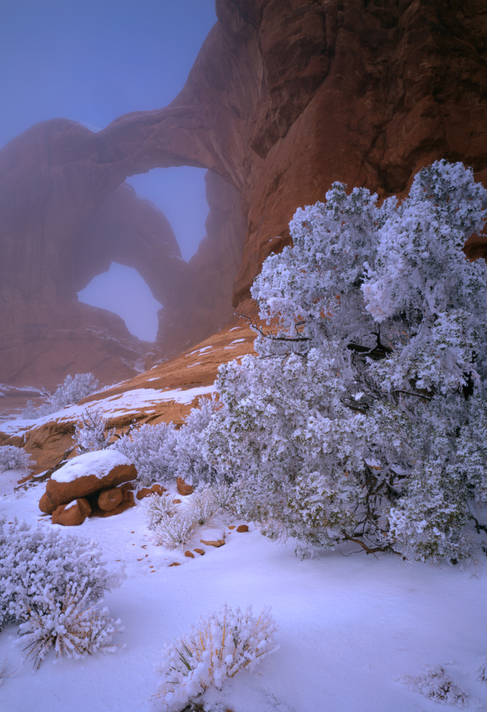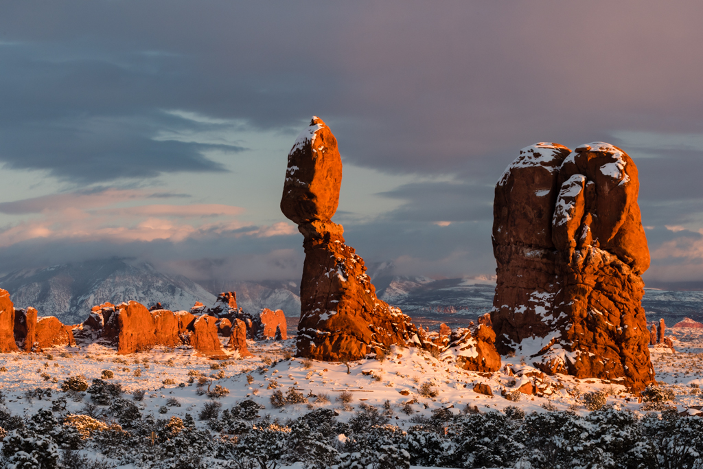 We are excited to operate our third workshop based in Moab, Utah, as we visit Arches National Park and Canyonlands National Park. We are going during the best time of the year—early. After researching visitor statistics, there is no better time: “In January of 2016, about 20,000 people visited Arches. By May, that number jumped to more than 200,000, according to the National Park Service.” Roads will be open and soft sheets of snow will illuminate the Parks. Arches National Park contains the highest density of natural arches in the world and Canyonlands National Park has multiple waterways carving away at the sandstone buttes and ephemeral pools with frozen surfaces, making for an impressive and serene landscape like no other.