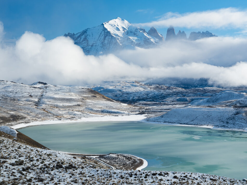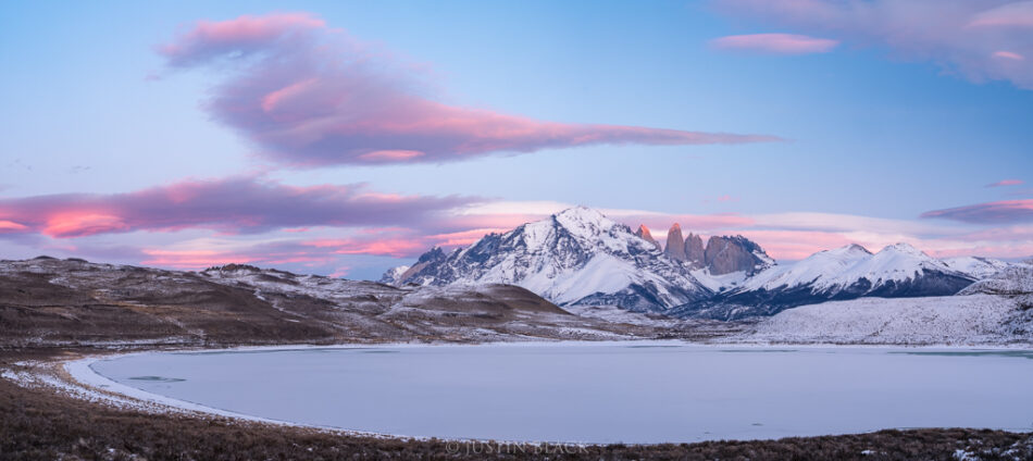 contiguous with and with panoramic views over one of the most beautiful landscapes on Earth: Torres del Paine National Park in Chilean Patagonia, covered with a blanket of snow. Ironically, winter temperatures here are only about 20-degrees cooler than the height of summer (expect highs in the 40s and lows in the 20s – 30s Fahrenheit), it’s less windy, and less likely to rain. Winter is actually a surprisingly pleasant time at Torres del Paine, though visitation plummets and most park accommodations are closed.