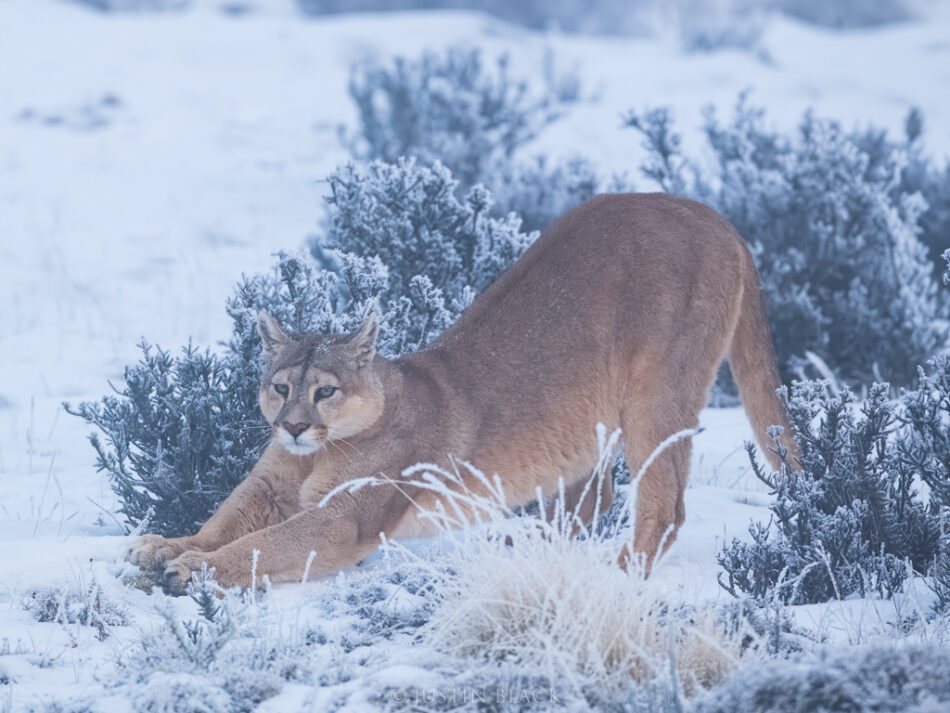 To find out for yourself, make pictures you never imagined were possible, and learn a great deal about puma behavior in the process, join Justin Black on a 65-square-kilometer private ranch, Estancia Laguna Amarga. A healthy and growing population of wild pumas roams free there, moving at will between the ranch and park. About a dozen adult pumas are present on the estancia at any one time, and several cubs of various ages are typically present as well, making this perhaps the densest concentration of wild pumas anywhere in their expansive range. We have mastered the art of successfully tracking these apex predators through this landscape of rolling hills beneath the Paine range.